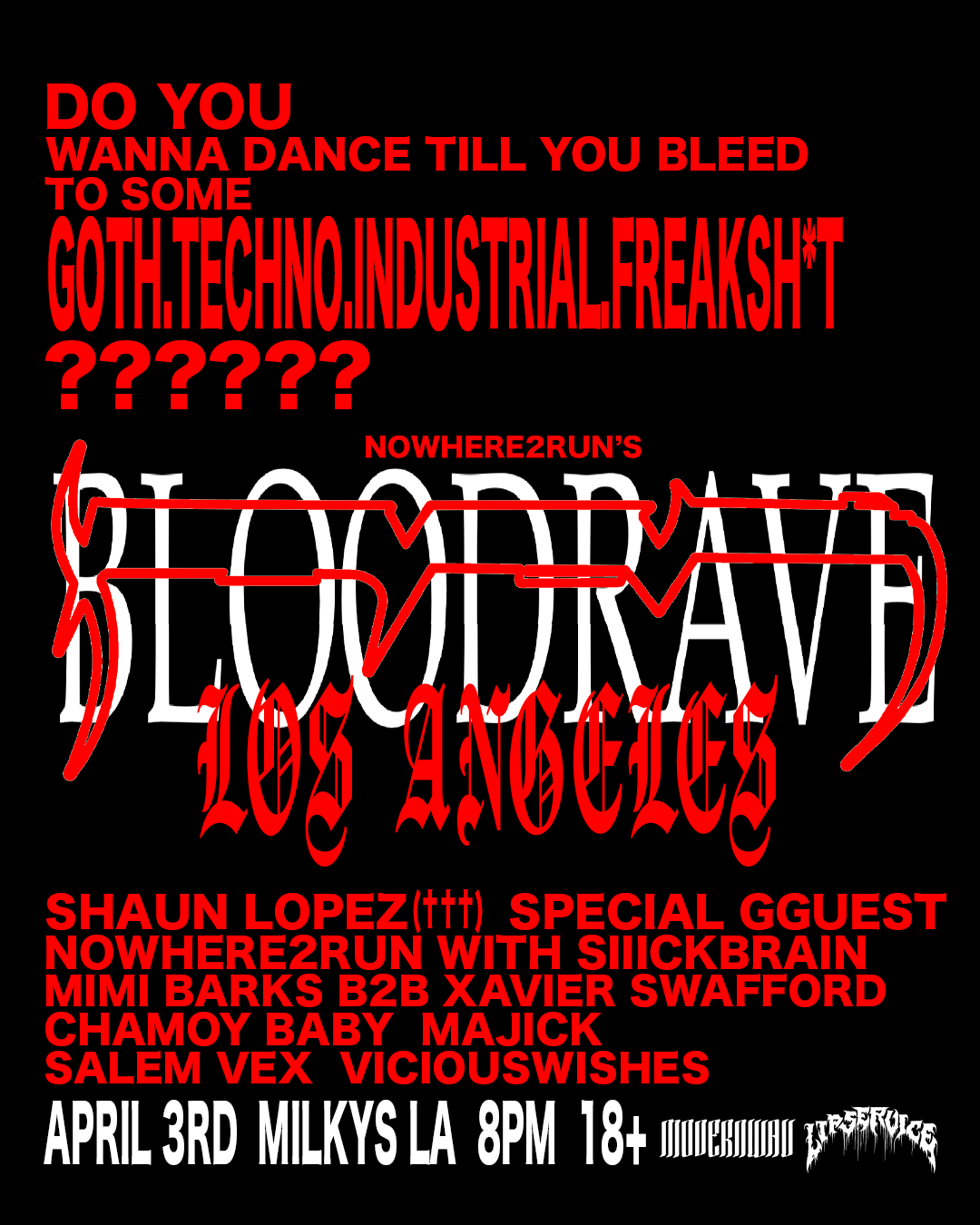 NOWHERE2RUN with SIIICKBRAIN, Shaun Lopez +++ (Crosses), CHAMOY BABY, and Xavier Wafford (3TEETH) at Milkys, Los Angeles, CA