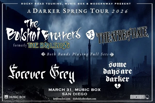 Music Box Presents The Bolshoi Brothers, Theater of Hate, and Forever Grey live in San Diego.